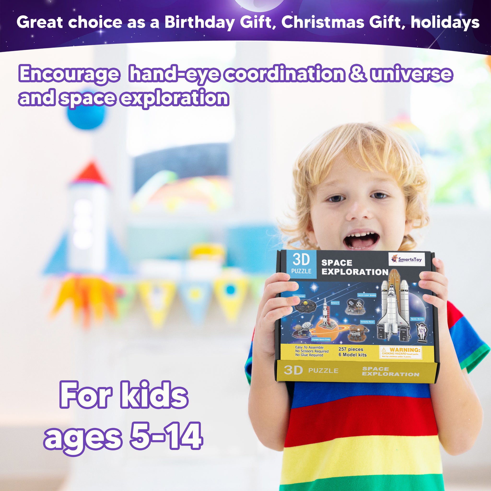 🌟Poorly cut building sets with missing pieces can make learning go from a fun, interactive adventure to frustrating fast. At SmartsToy, Our 3-d puzzles Space toy model kit has 257 carefully cut pieces that make up 6 awesome NASA toys that kids have a blast building – all while being INSPIRED to explore the wonders of outer space, science and more!